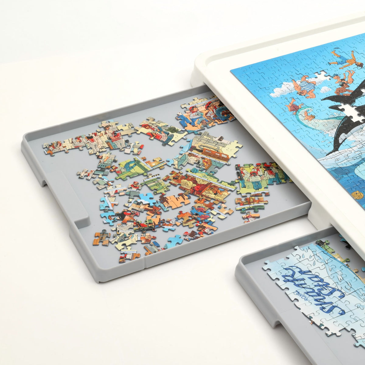 All tables, whether you choose a classic puzzle table or a versatile puzzle board with drawers, are lightweight and designed to fit easily on most dining or coffee tables.